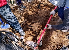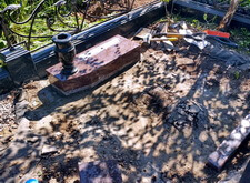 Первым делом мы приступаем к демонтажу объекта: разбираем основание, отодвигаем в сторону уцелевшие элементы надгробья.