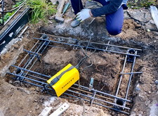 Заливаем каркас бетоном так, чтобы он был вровень с землёй и со стороны фундамента было абсолютно не видно.