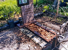 Так выглядит окончательный вариант места захоронения. В правую верхнюю часть надгробья мы установили заранее изготовленный элемент, на территорию участка досыпали каменную крошку, цветник наполнили мульчей.